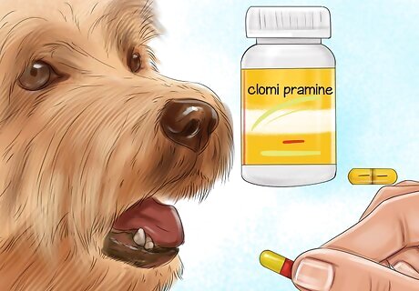 Consider medication. Medication for behavioral problems should always be viewed as a last resort when training alone hasn't worked. However, medication by itself will not be as effective. In order to correct your dog's behavioral problems, you'll need to continue working on behavioral training, even as you administer medication from your vet. Some commonly used prescription medications for canine behavioral problems include: clomipramine (Clomicalm) amitriptyline (Elavil) fluoxetine (Prozac)