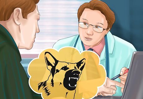 Communicate with your vet. If your dog has displayed behavioral problems that could be dangerous, it's important that you talk to your veterinarian. Your vet may run tests to see if your dog is otherwise healthy. Your vet can also recommend behavioral and medical options that might help improve your dog's behavior. Contact your vet once you've witnessed your dog misbehave dangerously more than once. The first time could be an anomaly, but a second incident is likely the start of a pattern. Describe your dog's behavior in meticulous detail. Try to remember the exact situation and circumstances in which each incident occurred. Ask your vet questions about your dog's behavior. Your vet may have recommendations, so letting the vet know that you're open to suggestions can help expedite your dog's treatment.