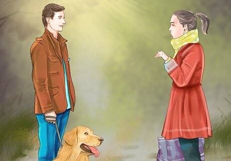 Hold your dog's attention. In addition to holding a short leash, holding your dog's attention is one of the best ways you can help reduce the risk of incidence on walks. It may take some training, but eventually your dog will focus on you - and on the treat in your hand. Use a verbal cue, such as "watch me," "leave it," or "sit and stay." Use your cue consistently with your dog so it knows what you expect. If you use a clicker for training purposes, you can utilize that tool while trying to hold your dog's attention. Bring plenty of treats on your walks. Any time your dog gets upset, offer treats as a reward for good behavior when your dog responds to your commands.