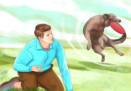 Give your dog more exercise. Getting adequate exercise each day can help reduce aggression and other behavioral problems in many dogs. Though this may not completely fix your pet's problems, for many dogs it noticeably reduces incidences of aggression and misbehavior. Aim to get 45 to 60 minutes of brisk exercise twice each day. Your dog should be panting by the end of each exercise session. You can give your dog exercise by playing catch, throwing a frisbee, going jogging or running, going hiking, or taking your dog swimming. Don't start out with long, strenuous workout sessions if your dog isn't used to it. Start slowly and build to the twice-daily 45 to 60 minutes gradually over several weeks.
