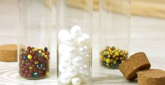 Keep your smallest beads in test tubes with lids. Glass or plastic test tubes are a great way to store small beads, such as seed beads or perler beads. With particularly small beads, you’ll be able to store hundreds of beads in a single test tube, keep them secure with the cork or plastic lid, and have them on display and easy to find, if you choose. Once you store your small beads in test tubes, you can organize the tubes in a test tube rack or lipstick holder if you want the tubes to stay upright and on display, or in a basket or box if you don’t mind laying them on their sides.