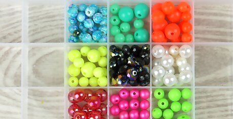 Try a tackle box to store larger beads. Tackle boxes are usually made with several large separate compartments, making them a good option for storing larger beads. While tackle box compartments aren’t generally as airtight as pill or bead-specific organizers, bigger beads are less likely to spill through the cracks and will likely stay in their designated compartments. Tackle boxes are also a good option for storing beads that you only have a few of and keep in small plastic baggies. The larger compartments allow you to separate the beads in the baggies by size, color, or material and keep them all together. Art supply and tool boxes are both good alternatives to a tackle box.