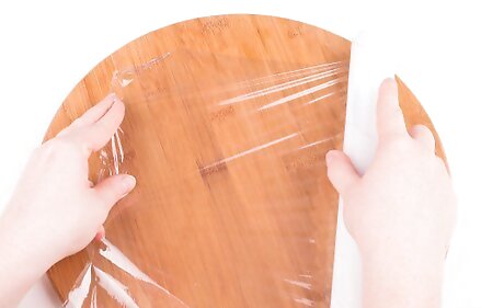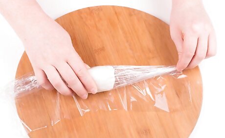 Wrap the marzipan tightly. Overlap the plastic wrap to ensure that air cannot enter the package.