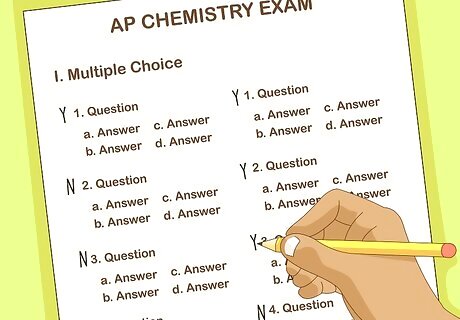 Pace yourself for each multiple choice question. The best strategy for the multiple choice section is to go through all of the questions and answer as many as you can, taking 40 seconds per question. Mark a “Y” next to questions you know you can answer with more time and an “N” next to questions you have no idea how to answer. Try to get through all 60 questions in about 40 minutes (15 questions per 10 minutes).