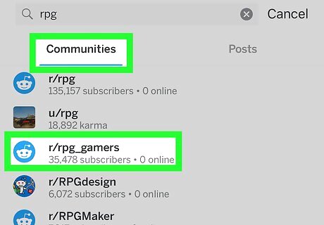 Tap a subreddit. In the "Communities" tab, tap the name of the subreddit you want to subscribe to. All subreddits start with "r/" in the title. This takes you to the subreddit's main page.