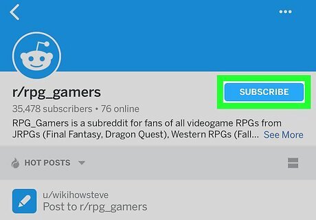 Tap Subscribe. It's across from the subreddit name near the top of the page. This subscribes you to the subreddit. Posts from this subreddit will now show up in your Reddit feed.