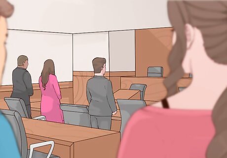 Observe a trial if you are representing yourself. You will probably be nervous representing yourself. To calm your nerves and give you confidence, you can sit in on a trial. Courtrooms are generally open to the public. Ask the court clerk if there is a trial you can watch. Pay attention to where the parties sit and how they speak to the judge. Do they stand when speaking? Where do they stand when asking witnesses questions? Also listen to how they ask questions. Finally, pay attention to how they are dressed. You want to look as professional during your own trial.