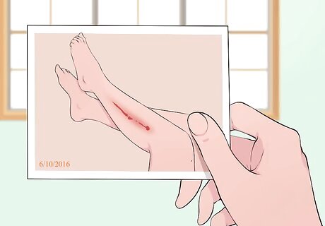 Take photographs of your injuries. As soon as possible, you should document your injuries with color photographs. Photographs can be graphic evidence of the injury. Your trial might not take place until a year after you were injured. By that time, cuts and broken bones will have healed and bruising will have disappeared. Take pictures of your injuries from several different angles. Remember not to smile in the photographs. If your camera shows a date on the front of the picture, make sure the correct date shows up.