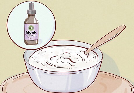 Blend monk fruit into smoothies. If you make smoothies or eat plain yogurt, use monk fruit as a sweetener. Instead of adding juice to sweeten up a green smoothie, add a splash of monk fruit extract. Instead of buying yogurt with added sugar, sweeten your yogurt with monk fruit. You can also add fruit to smoothies and yogurts to further sweeten them up. This will add healthy fiber, vitamins, and minerals to such foods in addition to adding sweetness.