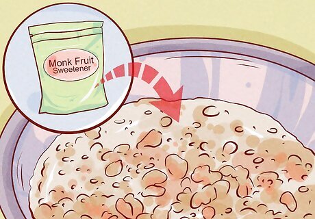 Sweeten breakfast foods with monk fruit. You can add monk fruit in sugar or extract form to cereals and oatmeal. This will sweeten them up without having to add any extra sugar. If you usually add things like honey or sugar to your plain cereal and oatmeal, use monk fruit instead.