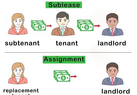 Choose between a sublease or assignment. If you sublease a home from someone else, you are technically renting from them and they remain responsible to the landlord. If they assign their lease to you, on the other hand, you take over the remainder of their lease term on the same conditions and rent directly from the landlord. In either a sublease or assignment both the original tenant and the sublessee or assignee will still be responsible for the obligations contained in the lease unless the landlord clearly releases the original tenant from them.