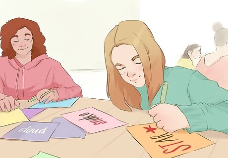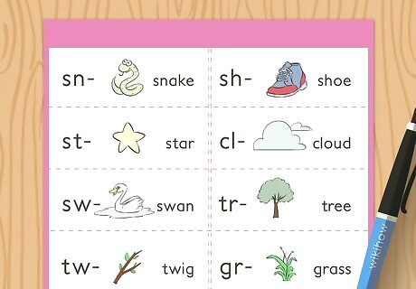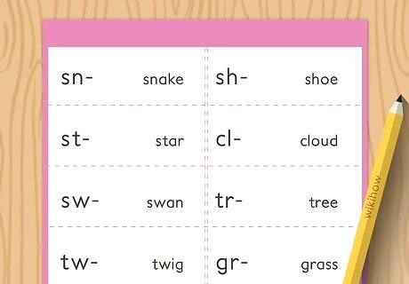 Practice the concept with flashcards. Flashcards can be helpful for demonstrating how the letters evolve from a blend into a complete word. Some flashcards show the consonant blend in a different color from the rest of the letters in the word. Other flashcards only have the consonant blends on them. Some have a picture and a selection of blends so students can choose the blend that matches the picture. You can purchase consonant blend flashcards online or make your own.