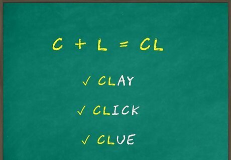 Use blending maths to teach these blends. Write the letters of the blend in the form of an equation. For example, “c+l = cl”. Read the equation out loud to students. Make sure to say the sounds of the letters instead of the names, so that students can hear what the blend sounds like in a word. Your students should know basic consonant sounds before moving on to blends. Remind them about the difference between hard and soft "c", and explain that when "c" is before "l", it will be hard. If they are having trouble, fully review consonant sounds before teaching blends. Students usually have an easier time starting with blends that begin words. Start with those, and work your way up to blends found at the end of words.
