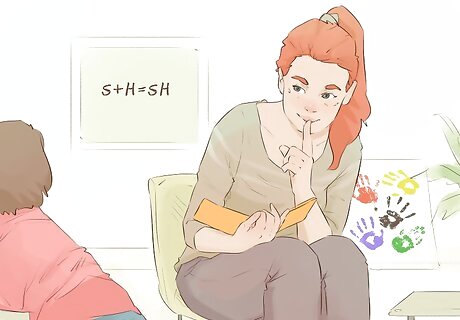 Use sounds for difficult blends. Some blends don’t sound like the 2 or 3 letters blended together. For instance, “ch” doesn’t really sound like the letter c+h. It’s helpful to teach these blends using distinctive sounds. For example, you could demonstrate “ch” by pretend sneezing and making an “achoo” noise. You could say “Shhh” as in “be quiet” to teach the “sh” blend.