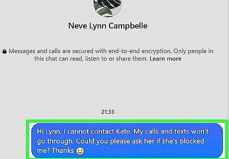 If you have friends in common, ask a friend to find out for you. Keep in mind that the person in question may not want to speak to you, so respect any boundaries they have placed. This is the most straightforward way to know if you're blocked for sure. If you've been blocked, respect the person's wishes and refrain from contacting them.