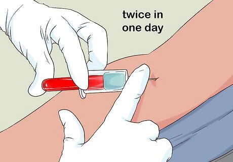 Allow your doctor to test your blood twice in one day. Your doctor will draw blood from you at their office once in the morning and then again in the late afternoon. They will schedule the first appointment at around 7-8 am and the second appointment at around 3-4 pm on the same day. This will ensure the test results are accurate, as your cortisol levels will fluctuate throughout the day. The doctor will draw blood from a vein in your arm. You may feel a slight sting when they draw the blood and the area may be a little sore afterward.