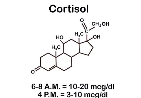 Get further testing if your cortisol levels are abnormally high or low. If your cortisol levels are very high or very low, your doctor may recommend that you get further testing to rule out any serious medical issues. High cortisol levels can be a sign of Cushing syndrome. If you have other symptoms like obesity, high blood pressure, high blood sugar, osteoporosis, or acne, your doctor may recommend you get tested for this issue. Low cortisol levels can be a sign of Addison’s disease. If you have other symptoms like significant weight loss, muscle and joint pain, fatigue, low blood pressure, nausea, and diarrhea, your doctor may suggest you get tested for this condition. If your doctor suspects a complex problem with your cortisol levels, they may refer you to a hormone specialist called an endocrinologist.