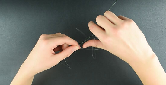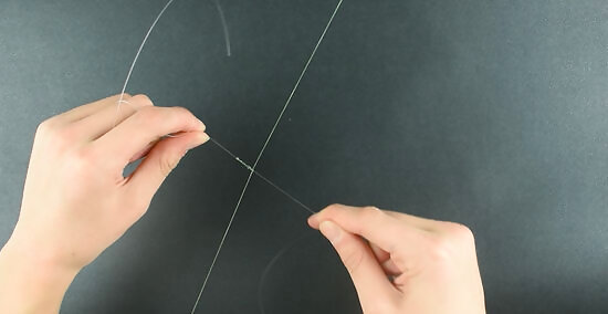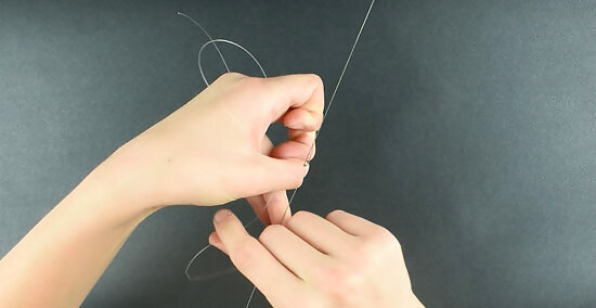 Wrap the lead line around the main line, below the knot. Take the end of the lead line and wrap it around the main line again, but this time wrap it over and around the side of the knot closest to you. Pull the end of the lead line to tighten the 2 coils you created. There should be one coil above the leader and one coil below the leader.