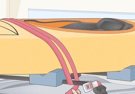 Buy bow and stern lines. Bow and stern lines are straps or ropes used to secure the bow and stern of your kayak to your car. Bow and stern lines will prevent your kayak from lifting up and detaching from your car while you’re driving. Use bow and stern lines with a cam buckle or ratchet attached so you can easily tighten them into place. You can find bow and stern lines online or at your local sporting goods store.