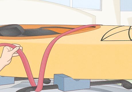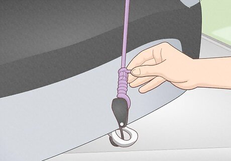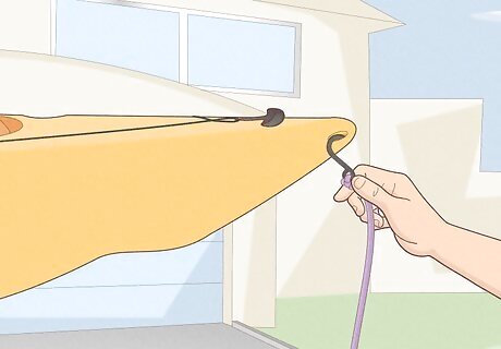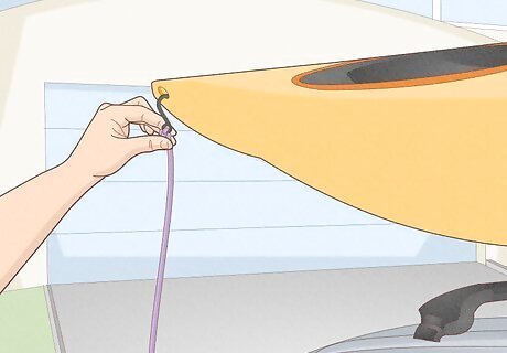 Hook the end of a bow line to the front end of your kayak. Insert the hook at the end of the bow line through the loop on the carrying handle at the end of your kayak. Make sure the hook is secure.