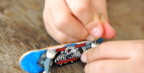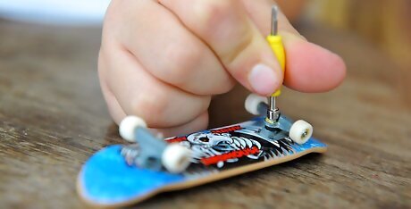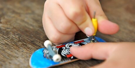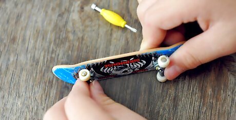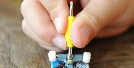 Take out the little, yellow tool that came with the Tech-Deck. If you don't have one of these, you can ask to borrow one from a friend or buy one for a dollar.