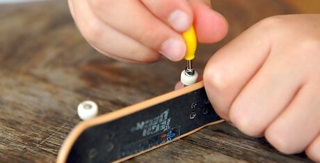 Tighten any loose wheels only after the trucks are tight. Wheels are loose if they move on their axles, along the lines where they are attached.