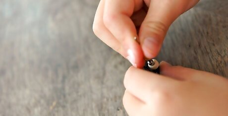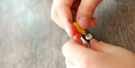 Insert the screwdriver end of the tool into one of the wheels, right into the middle.