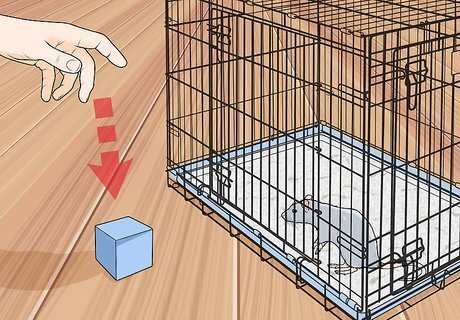 Play on your rat's curiosity and drop an object outside its cage. Rats are naturally curious, so if you accidentally drop an object or slightly throw it, they will flock to it. They enjoy taking things from their owners or pouncing on objects when they drop, so this step doesn't require much effort from your rat. Throwing or dropping something will catch your rat's attention and it will pick it up for themselves. Try using an eraser, wooden block, or piece of cloth. Your rat probably won't bring the object back to you right away, but that's okay! It will likely scurry away with it.