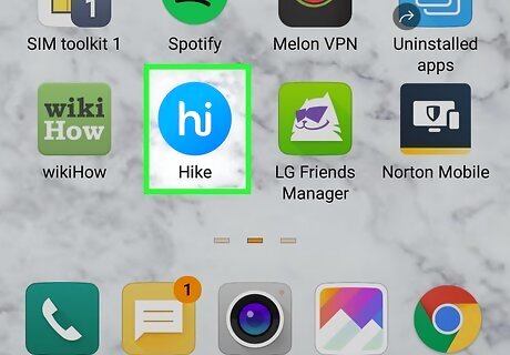 Open Hike. This app icon looks like the word "hi" on a blue chat bubble. You'll find this on your Home screens, in the app drawer or by searching.