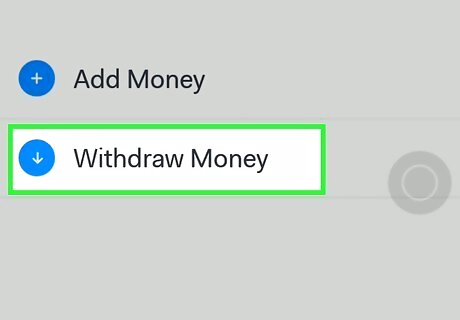 Tap Withdraw Money. This is the second listing in the menu under "Add Money."