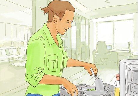 Learn to cook for yourself. When you lived at home, someone might have done most of the cooking for you. As you grow up and move away from home, you will need to learn how to cook for yourself. If you don’t know any basic cooking techniques, start simple. Learn to use the stove, oven, and microwave. Start off by learning a few simple dishes. Take a cooking class. Ask a parent or another adult to teach you some cooking techniques. Watch cooking shows on the television or online.