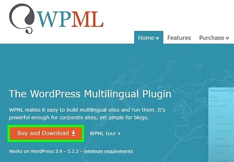 Install the WPML plugin in WordPress. WPML (WordPress Multilingual Plugin) is a premium WordPress plugin that translates plugins, themes, widgets, and other WordPress files into different languages. Here’s how to install it: Purchase the plugin from https://www.wpml.org. Click the Downloads section and then download each component. Each component will download as a separate .Zip file. Sign into your WordPress admin dashboard. Click Plugins. Click Add New. Click Upload Plugin. Select all of the .Zip files you downloaded (hold ⌘ Command (Mac) or Control (Windows) as you click each file to select multiple files at once). Click Install Now. Enable WPML on the Plugins page. Run the installation wizard to install the desired languages.