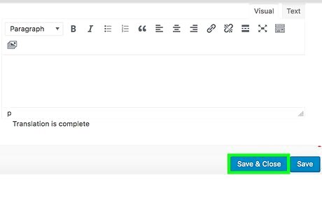 Translate the listed strings. Click translations at the top-right corner of the list to open the menu, then select the desired language. When you’re finished, check the box next to ″Translation is complete″ and save your changes.