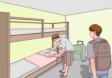 Stay at a hostel for a low-cost option. Websites like Hostels.com, Hostel Worldwide, and Hostel Bookers can provide you with pricing and availability for hostels across the world. You should understand first that you’ll be sharing your accommodations with other travelers and so you should prepare yourself mentally for a dormitory-style experience. Always take necessary precautions to secure your valuables and documents while living with others.
