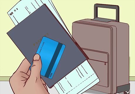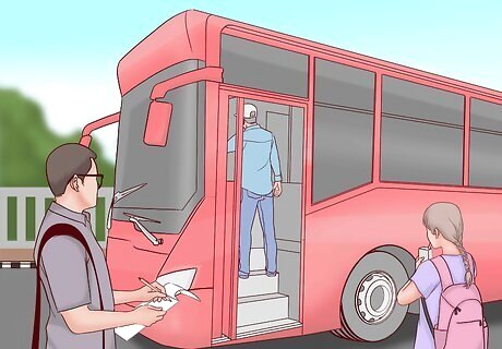 Enroll in credit card rewards programs. Your financial institution likely has a rewards program through which you can start accumulating points towards free travel just by entering your email address and a few other details. These points can often be applied towards vacation packages, or else used to obtain discounts on travel by air, land, or sea. They can also be exchanged for frequent flyer miles on participating airlines. Bus companies like Greyhound and passenger train companies like Amtrak also have rewards programs through which you can accumulate points. Sign up for their rewards programs and make sure to log in to your account first before booking trips by bus or train so that each paid trip counts towards your point total.