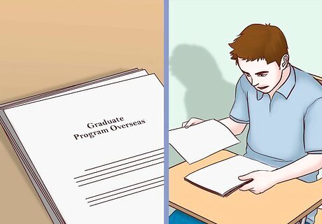 Enroll in an undergraduate or graduate program overseas. In addition to semester-long programs, you may want to consider completing your entire college program overseas. If you’re in high school, carefully research overseas college programs and discuss this possibility with your parents. You may want to spend a year or two at a college in your home country, and after you’ve had a couple of years of living and studying on your own, transfer to a program abroad to complete your degree. Keep your grades high to maximize your chances of getting a scholarship to cover the costs. If you’re applying for a graduate program and working for a multinational corporation, you may be eligible to have your company cover the costs of a part-time graduate program overseas, provided you work full-time in their office overseas. Usually companies who agree to do this also have you sign a contract indicating you’ll work for them for a certain period after you graduate, as well as maintain a certain minimum grade point average throughout the duration of the program. You’ll want to discuss such opportunities thoroughly with your HR department.