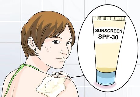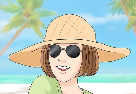 Wear protective clothing. Wear hats, visors, sunglasses, and anything else you can think of to shield your skin from the sun's rays. You can even purchase UV-block clothing.