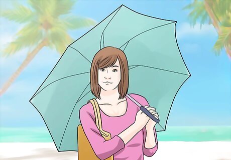 Avoid the sun at certain times of the day. Try to stay out of the sun during the hours of 10a.m. to 4p.m., when sun is highest in the sky. This is when the sunlight is most direct, and the UV rays are therefore more damaging. If you can't avoid the sun entirely, seek share whenever possible.