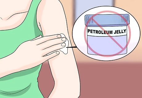 Avoid topical anesthetic creams and sprays. This is because anesthetic products applied to the skin can cause infection. In particular, avoid lotions or creams that contain benzocaine or lidocaine. While once commonly used in the past, these products can cause irritation and allergic reactions. Avoid using petroleum jelly (also known by the brand Vaseline). Petroleum can clog pores and trap heat within the skin, preventing proper healing of your skin.