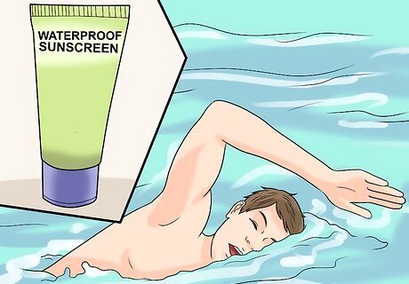 Be careful in the water. Not only does water affect the effectiveness of topical sunscreens, but wet skin in general is more susceptible to UV damage than dry skin. Use waterproof sunscreen when going to the beach or pool, or when exercising heavily outside. If swimming or sweating heavily, you should apply sunscreen more frequently than usual.
