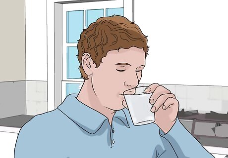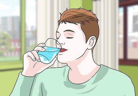 Drink water. Sunburns draw fluid to the surface of the skin and away from other parts of the body. Make an effort to drink plenty of water (at least eight glasses (8 oz each) a day). You could also drink fruit juices or sports drinks. Be sure to watch for signs of dehydration, including dry mouth, thirst, decreased urination, headache, and lightheadedness.