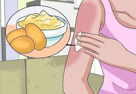 Use cortisone cream to reduce inflammation. Cortisone cream contains a minimal amount of steroids that help reduce the inflammation of the sunburn by suppressing the activity of the immune system. It is not advisable to use cortisone cream on children, so consult your physician for an alternative.