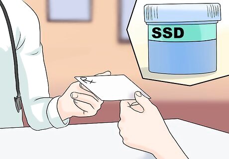 Request a prescription for 1% silver sulfadiazine cream. Ask your doctor if he will prescribe you a 1% silver sulfadiazine, which is a strong bacteria-killing chemical that is used to treat second- and third-degree burns. Generally, this cream is applied topically twice a day. Do not stop using it until your doctor tells you to stop. This cream can have severe side effects, though they are rare. Side effects can include pain, itching, or burning of the treated skin. The skin and mucous membranes (like the gums) can also become blur or gray in color. Ask your doctor about potential side effects, and stop use immediately and call your doctor if they arise.