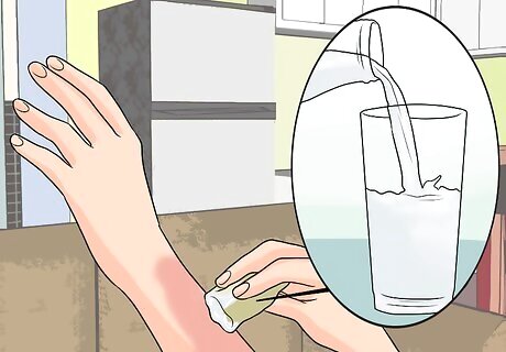 Try applying a milk compress. Milk produces a protein film that helps calm the burning sensation of your skin, leaving it cool and allowing for relief and comfort. Soak a soft cloth in cool water with skim milk and drape it over the burned skin for several minutes. Make sure the milk is cool and not cold. Take it out of the fridge about 10 minutes before you plan to use it.