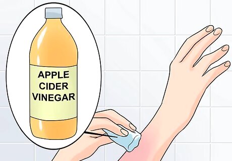 Use apple cider vinegar. Apple cider vinegar may help in treating blistered sunburns by absorbing the heat from the skin and relieving the burning sensation and the pain. The acetic acid and malic acid in vinegar can neutralize sunburns and re-establish pH levels in the affected area. This prevents infection by making the skin environment inhospitable to microorganisms. To apply apple cider vinegar, mix the vinegar with cold water and soak a soft cloth into the solution and apply or drape it on the affected skin. Vinegar can also be directly sprayed onto the sunburn skin. The use of vinegar is only recommended for skin without abrasions, open cuts or ruptures because it can burn and irritate the skin.