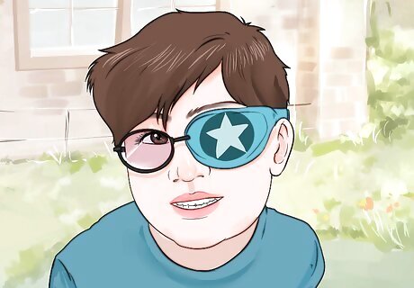 Treat the condition with corrective eyewear. Special glasses are commonly prescribed to improve the focus of of the eyes and correct misalignment. For certain cases of lazy eye, especially when nearsightedness, farsightedness, and/or astigmatism contribute to the condition, glasses can fix the problem entirely. In other cases, glasses may be used in conjunction with other treatments to fix lazy eye. Talk to your doctor or optometrist if you are interested in obtaining glasses for your lazy eye. In children of a sufficient age, contact lenses may sometimes be used instead of glasses. Note that, initially, people with lazy eye may find it more difficult to see when wearing their glasses. This is because they have become accustomed to their impaired vision and need time to gradually adjust to "normal" vision.