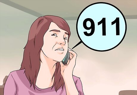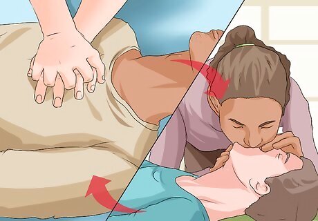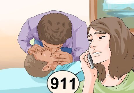 Call 911. If another person is nearby, have that person call 911 while you begin taking first aid steps. If no one else is around to assist you, then make the call to 911 yourself before beginning CPR. Follow the 911 operator’s instructions quickly, so you can return to CPR while awaiting help.