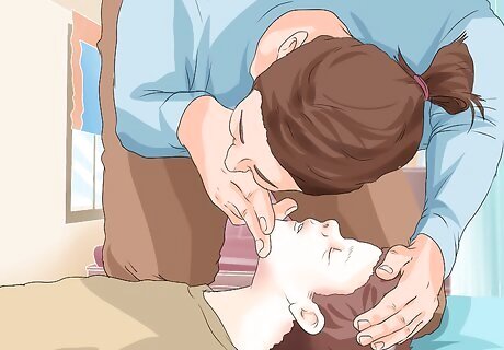 Check for breathing. If the person has become unresponsive, you should first assess the situation. See if the person shows any signs of breathing at all—chest rising or hearing breathing when you place your ear close to the person’s nose and mouth.