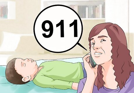 Have someone call 911. If someone other than you is around, have that person call 911 while you begin taking first aid steps for the child. Note that if you’re the only person around and the child isn’t breathing at all, you should begin CPR before calling 911, ensuring that the child receives circulation and oxygen. If you’re the only person around, but others are within earshot, then proceed through the next steps while periodically yelling for help. Ideally, someone else will be able to call 911 as you attend to the child.