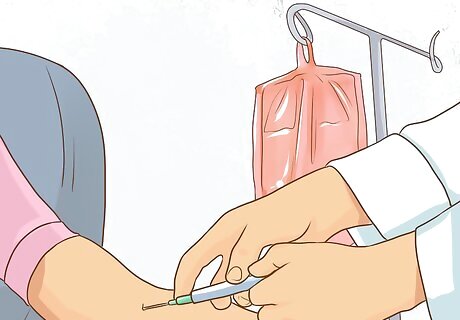 See a doctor for antibiotics to treat infections. The type of infection will determine what antibiotic treatment is necessary. Consult a medical professional at the first sign of an infection, such as a fever, for a screening to determine the reason for infection. Let the doctor know right away about any potential allergies to antibiotics such as penicillin. For blood infections, a blood transfusion may be necessary.